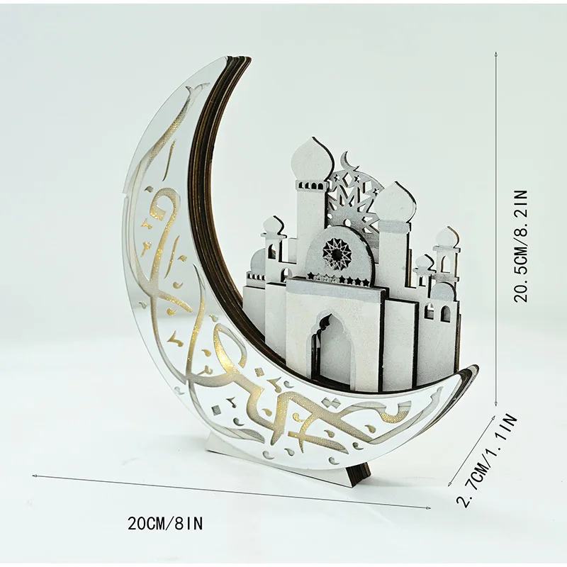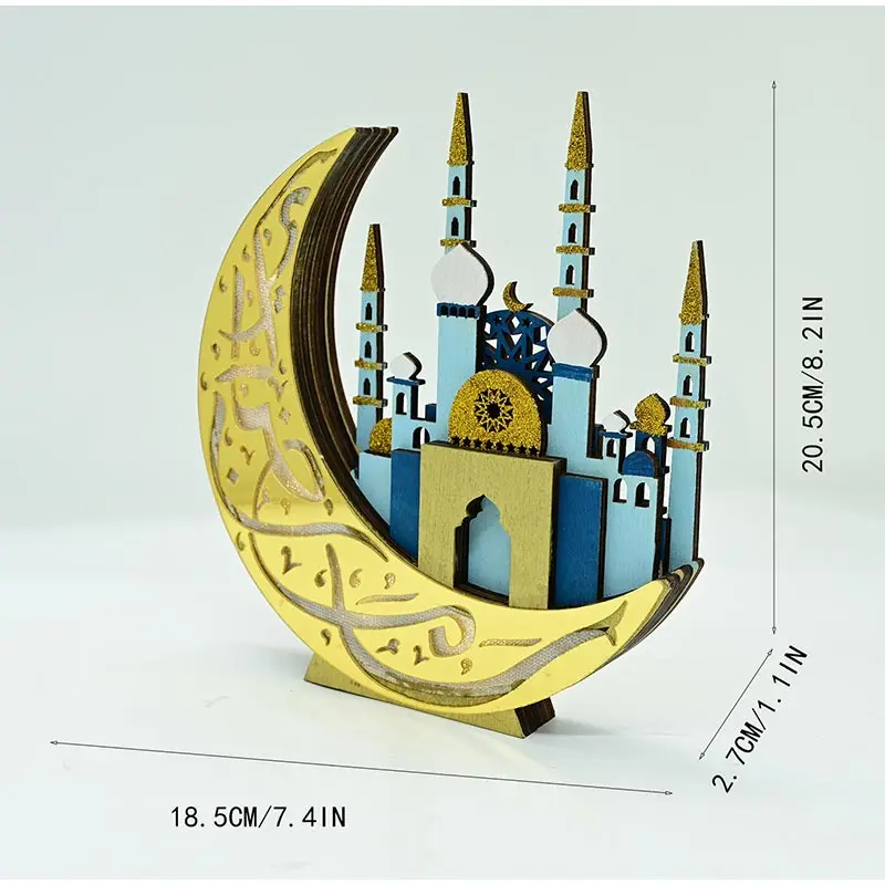 Ramadan Wooden Moon Middle Eastern Festival Decor Eid Mubarak Party Wooden Craft Ornament Festive Tabletop Decoration Home Decor